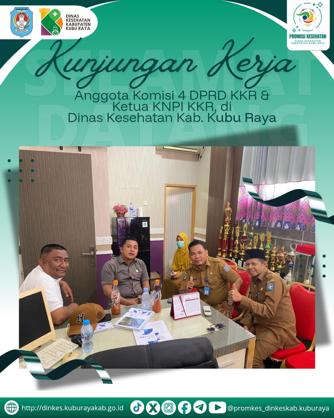 Dinas Kesehatan Kabupaten Kubu Raya menerima kunjungan Anggota Komisi IV DPRD Kabupaten Kubu Raya, Bapak Derahman, yang juga menjabat sebagai Ketua KNPI Kabupaten Kubu Raya, bersama Bapak Habib Hafis, pada Senin, 12 Januari 2026.