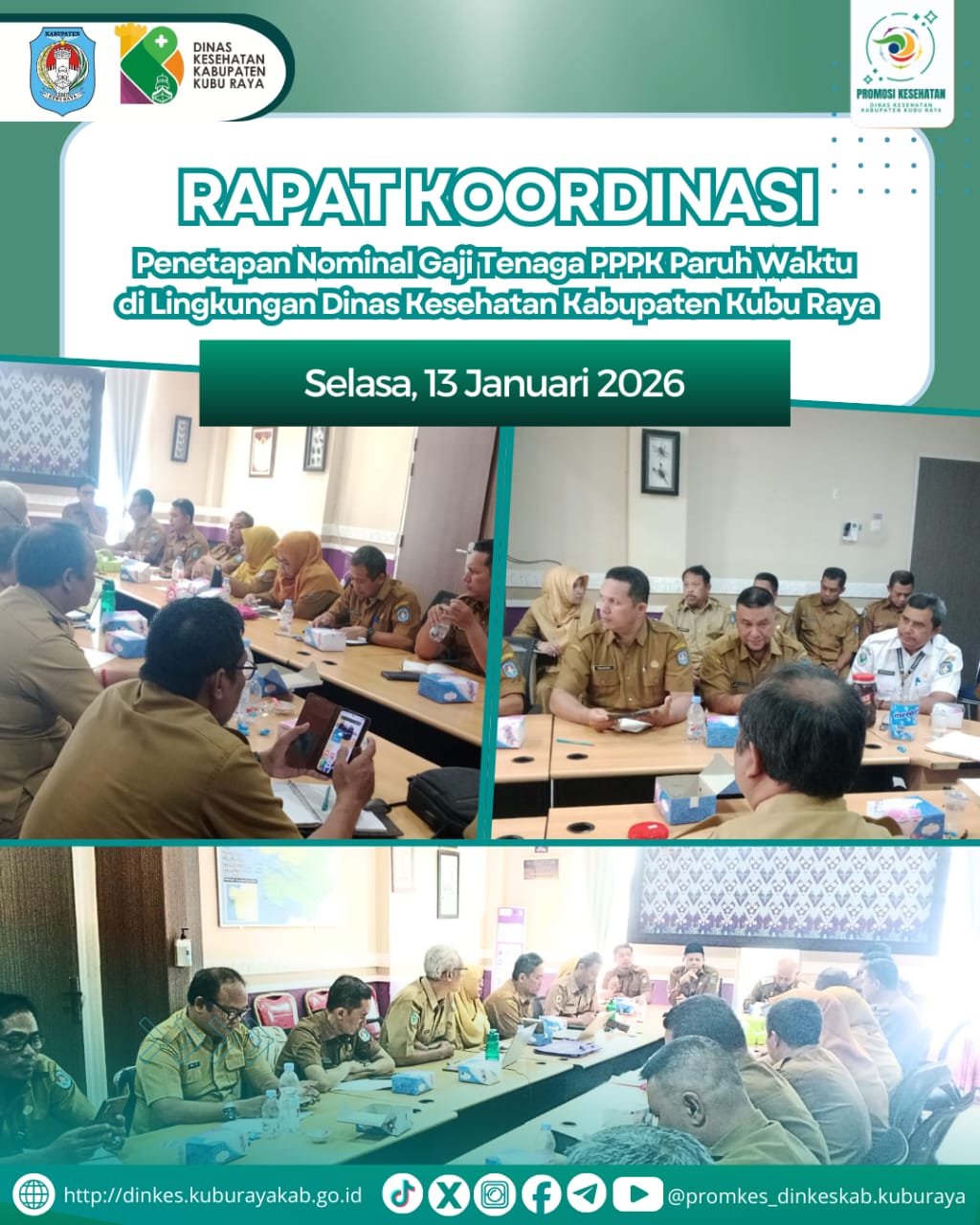 Dinas Kesehatan Kabupaten Kubu Raya melaksanakan Rapat Koordinasi Penetapan Nominal Gaji Tenaga PPPK Paruh Waktu di Lingkungan Dinas Kesehatan Kabupaten Kubu Raya, Selasa 13 Januari 2026.