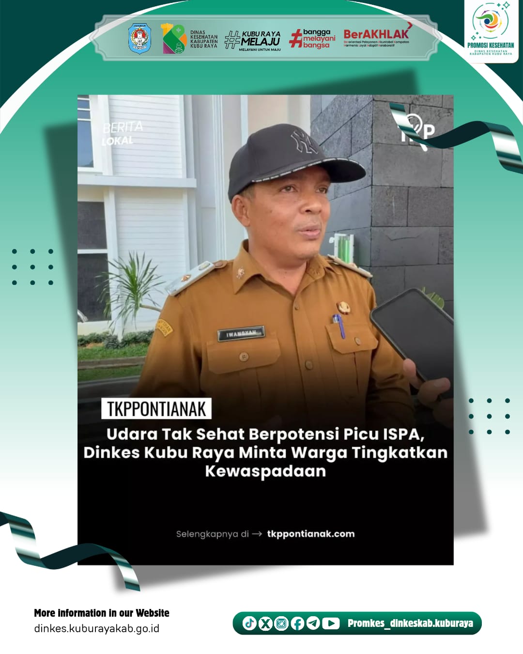 KUBU RAYA – Kepala Dinas Kesehatan Kabupaten Kubu Raya, Iwansyah, menegaskan bahwa kualitas kesehatan masyarakat sangat dipengaruhi oleh kondisi lingkungan, khususnya kualitas air dan udara. Dalam kondisi udara yang tidak sehat, seperti saat terjadi kabut asap, risiko gangguan kesehatan meningkat dan perlu diantisipasi secara serius.
