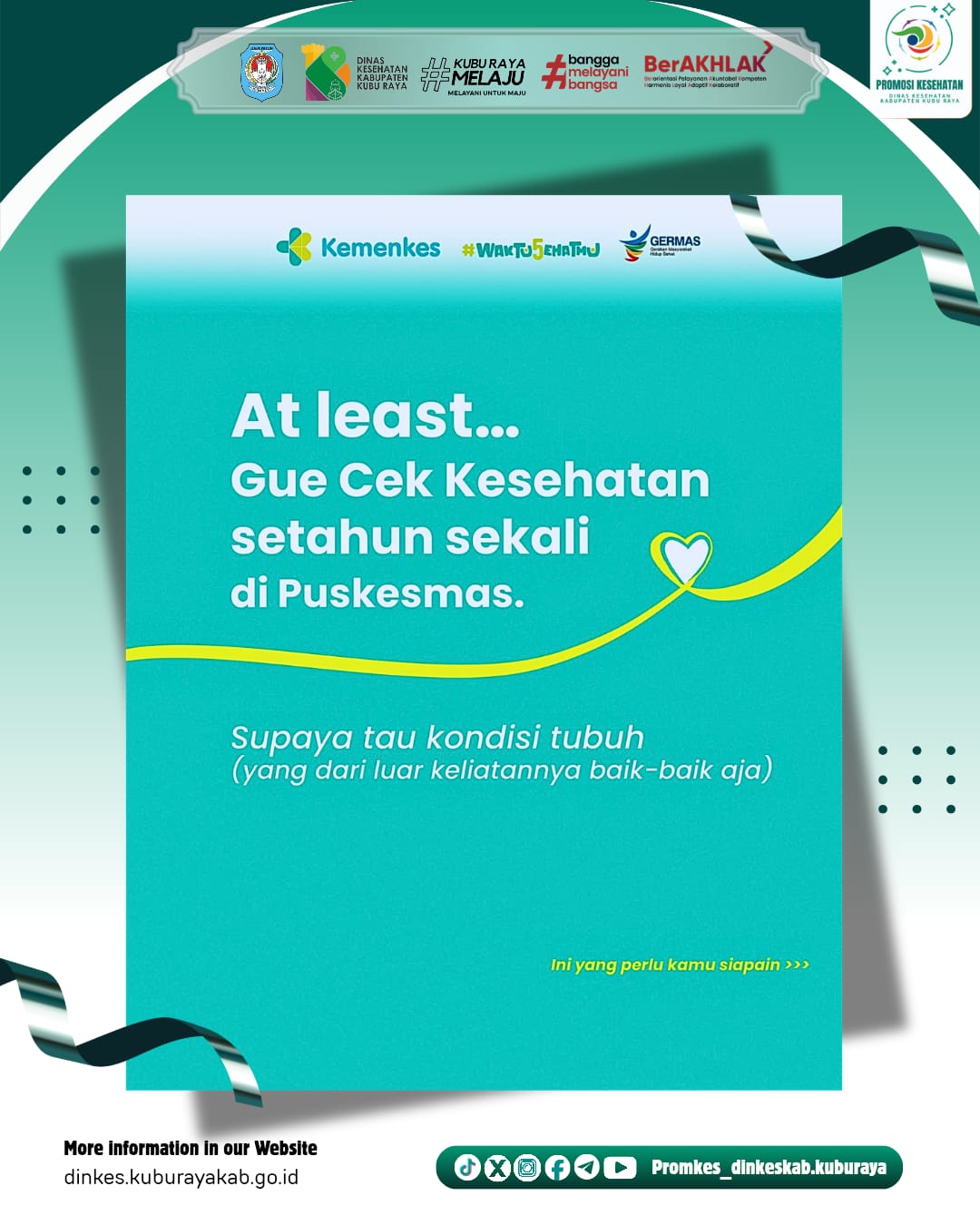 Nih, minimal manfaatin Cek Kesehatan Gratis di Puskesmas yang bisa kamu pakai setahun sekali. Simak yang perlu kamu siapkan sebelum CKG