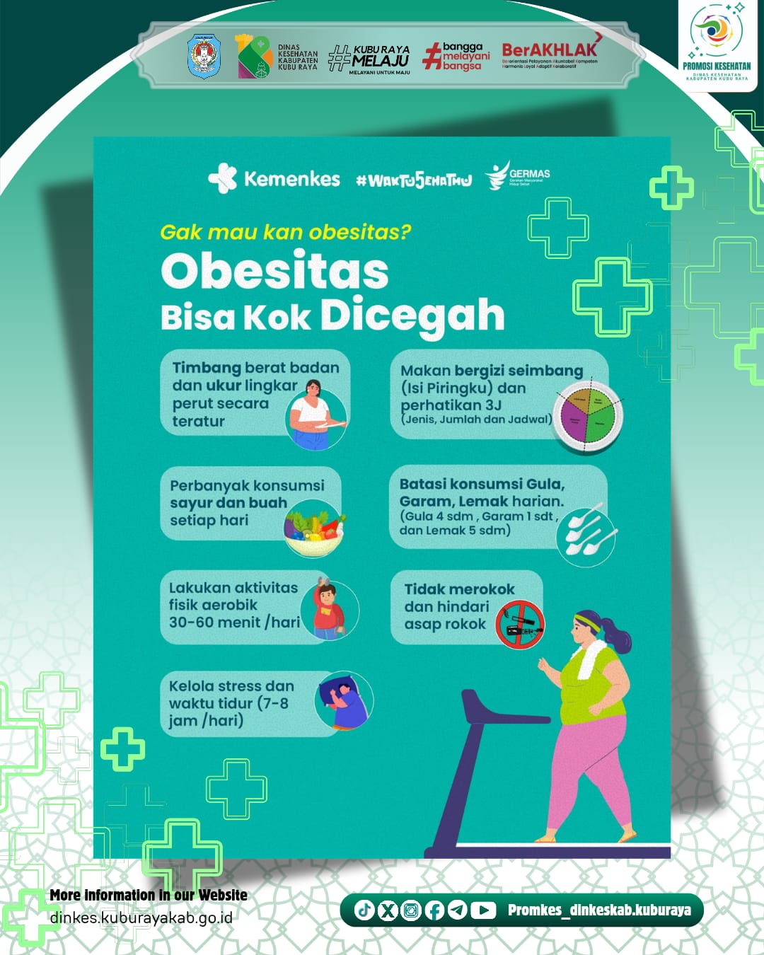 Setiap langkah kecil menuju gaya hidup sehat adalah investasi untuk masa depan cerah, jangan biarkan obesitas kendalikan hidupmu. Mari mulai dari langkah kecil: atur pola makan, aktif bergerak, dan cek kesehatan secara rutin.