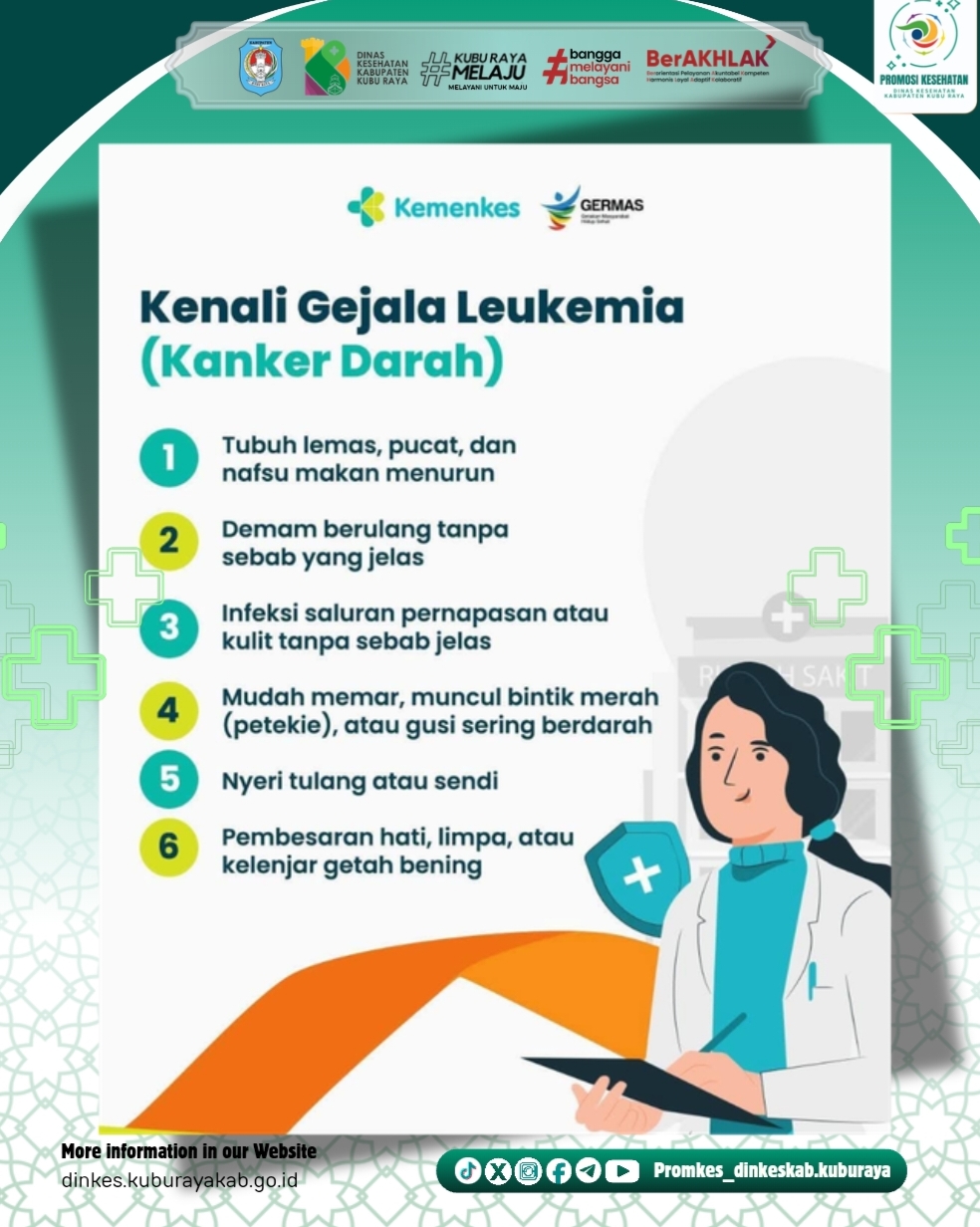 Leukemia bisa datang diam-diam dengan gejala yang sering dianggap sepele. Padahal, makin cepat dikenali, makin besar peluang untuk sembuh.