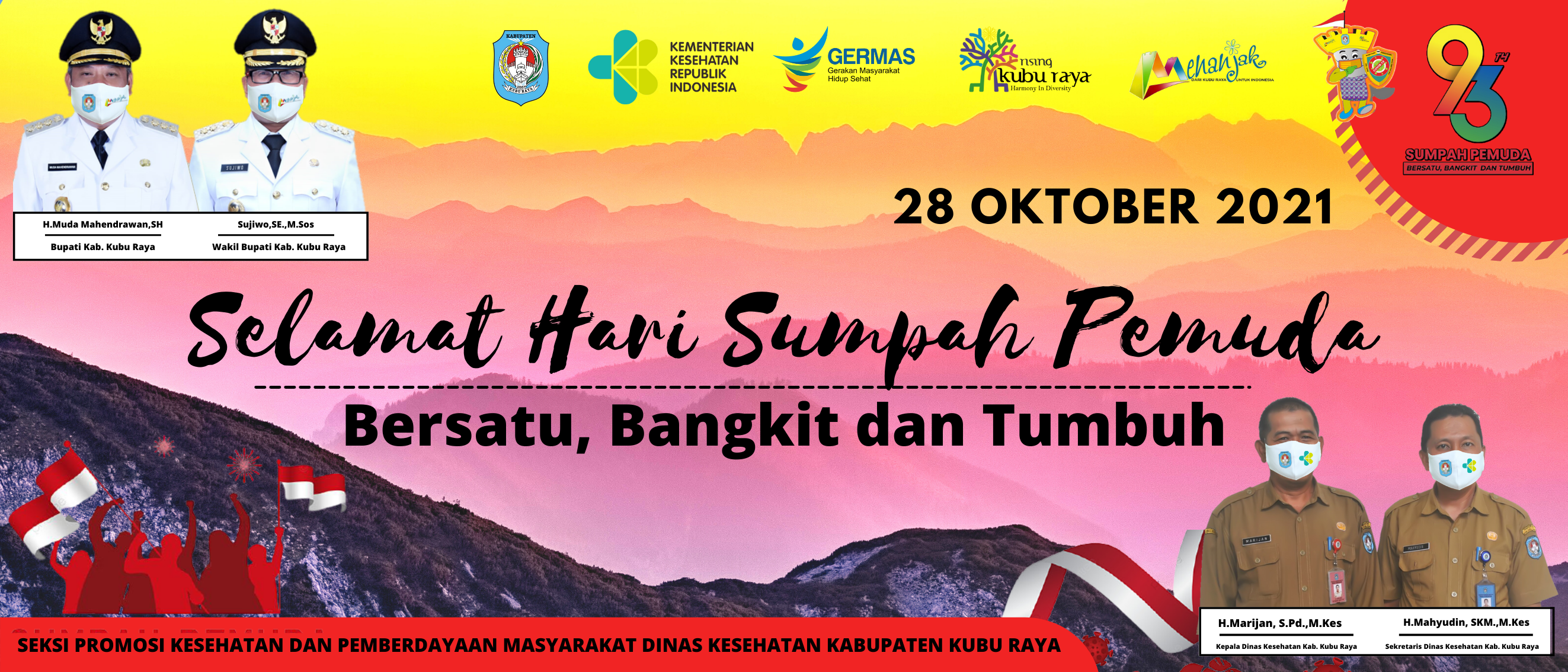 dinkes.kuburayakab.go.id- Kementerian Pemuda dan Olahraga (Kemenpora) Republik Indonesia telah merilis tema dan logo Hari Sumpah Pemuda ke-93 yang jatuh pada Kamis, 28 Oktober 2021. Pada peringatan kali ini, Hari Sumpah Pemuda mengangkat tema "Bersatu, Bangkit, dan Tumbuh".